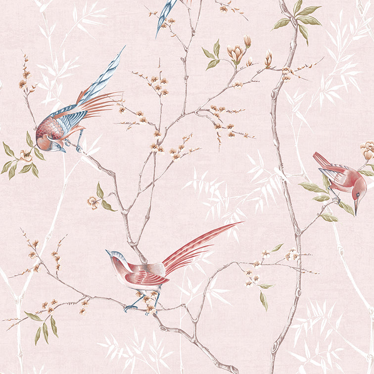 With a fresh shimmering backdrop Tori adds flashes of vibrant hues through an array of birds depicted on a cherry tree trail. Hand drawn in the Graham & Brown studio, Tori is an easy living, oriental take on a classic trail design.