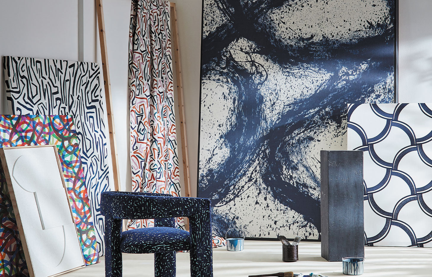 Alive with free-flowing movement and created outdoors by an expressive hand abstract markings twist and turn on a ground of embossed vinyl. Contemporary and statemental, Enigmatic is a mural wallpaper inspired by the mid-century phenomenon of kinetic art. This design is printed on 1 roll comprising of 4 panels:- A B C & D and each panel has a design repeat of 299.9cms. There is spacing between each panel. The total roll length is 13.35 metres.