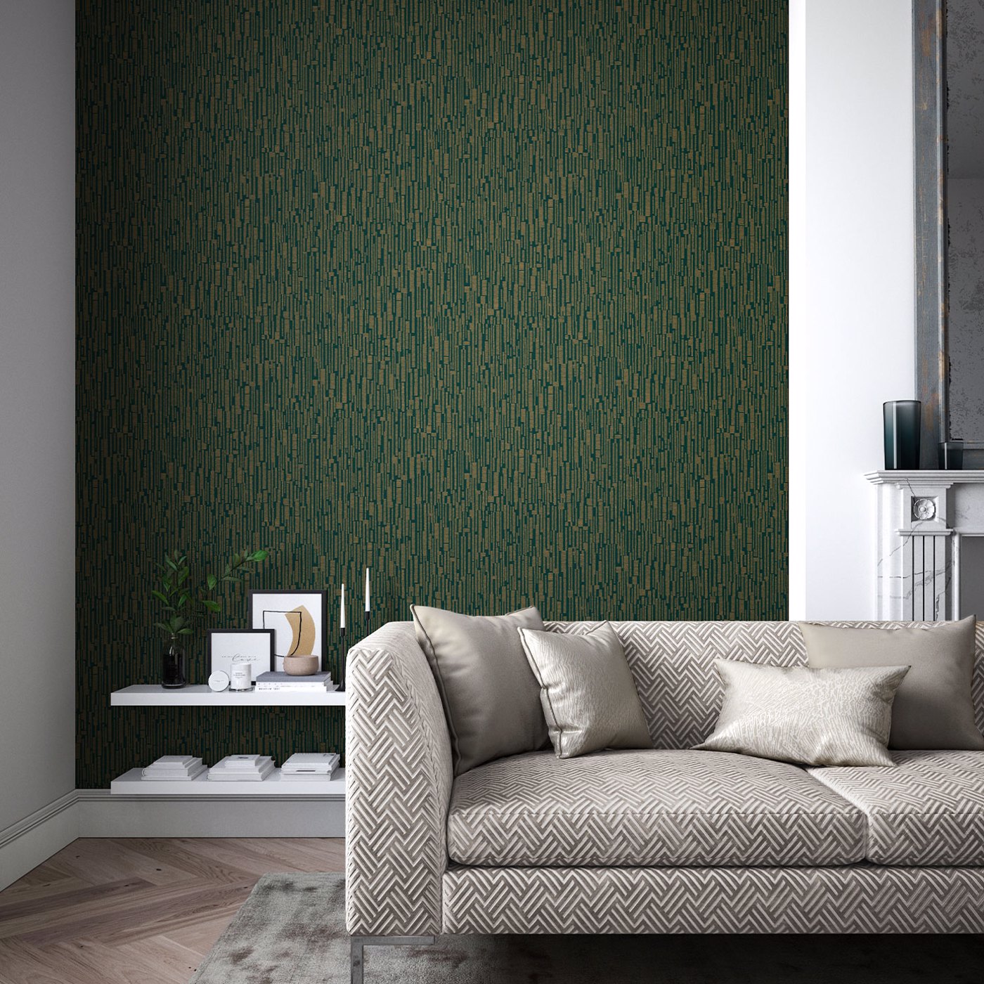 The towering skyline of a city that never sleeps is captured in the repeating geometric pattern of this Harlequin wallpaper....