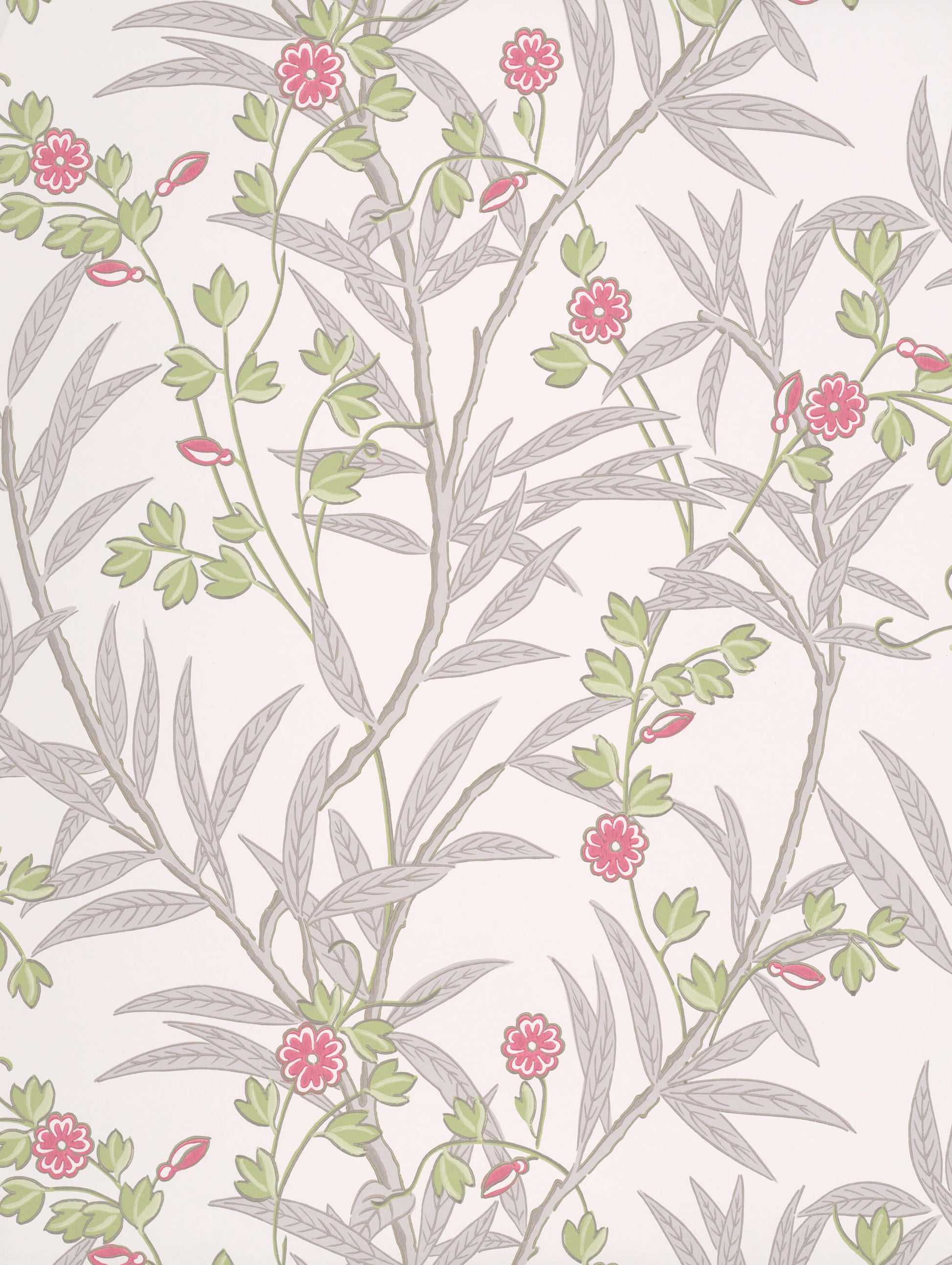 The Little Greene Bamboo Floral Wallpaper is a design inspired by miniature painted sections discovered on Chinese wallpaper fragments at Kingston Lacy Estate in Dorset. Despite limited knowledge about these approximately 200 identified fragments, it remains uncertain whether this print adorned the estate itself. During the 19th century, imported Chinese wallpapers were immensely popular in manor houses, where paper hangers would intricately cut out individual elements and affix them to panels, creating a seamless, panoramic flow. These fragments, perhaps remnants of that process, have now been reimagined into a modern interior's repeating pattern. Surface-printed and available in five vibrant colourways, each offering a contemporary burst of colour, this design breathes new life into historical aesthetics.