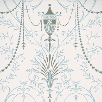 The Little Greene Marlborough Wallpaper is a stunning, large-scale pattern reminiscent of an early 20th-century interpretation of one of Robert Adam's designs. This design was found just after the passing of Queen Mary, who resided in Marlborough House until 1953. After her tenure, the house became the headquarters of the Commonwealth Secretariat. This wallpaper captures the grandeur and historic charm associated with such stately residences and is a timeless choice for interior decor.