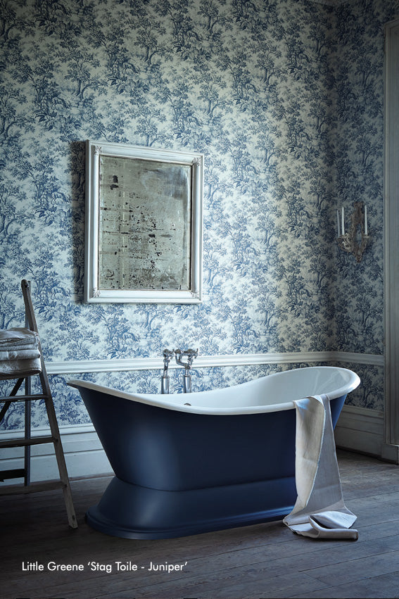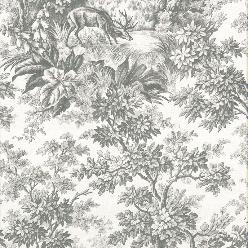 The Little Greene Stag Toile Wallpaper draws inspiration from an original 19th-century English linen. What sets it apart from typical Toile de Jouy designs, which originated in France during the late 18th century, is its less formal and more rustic character.