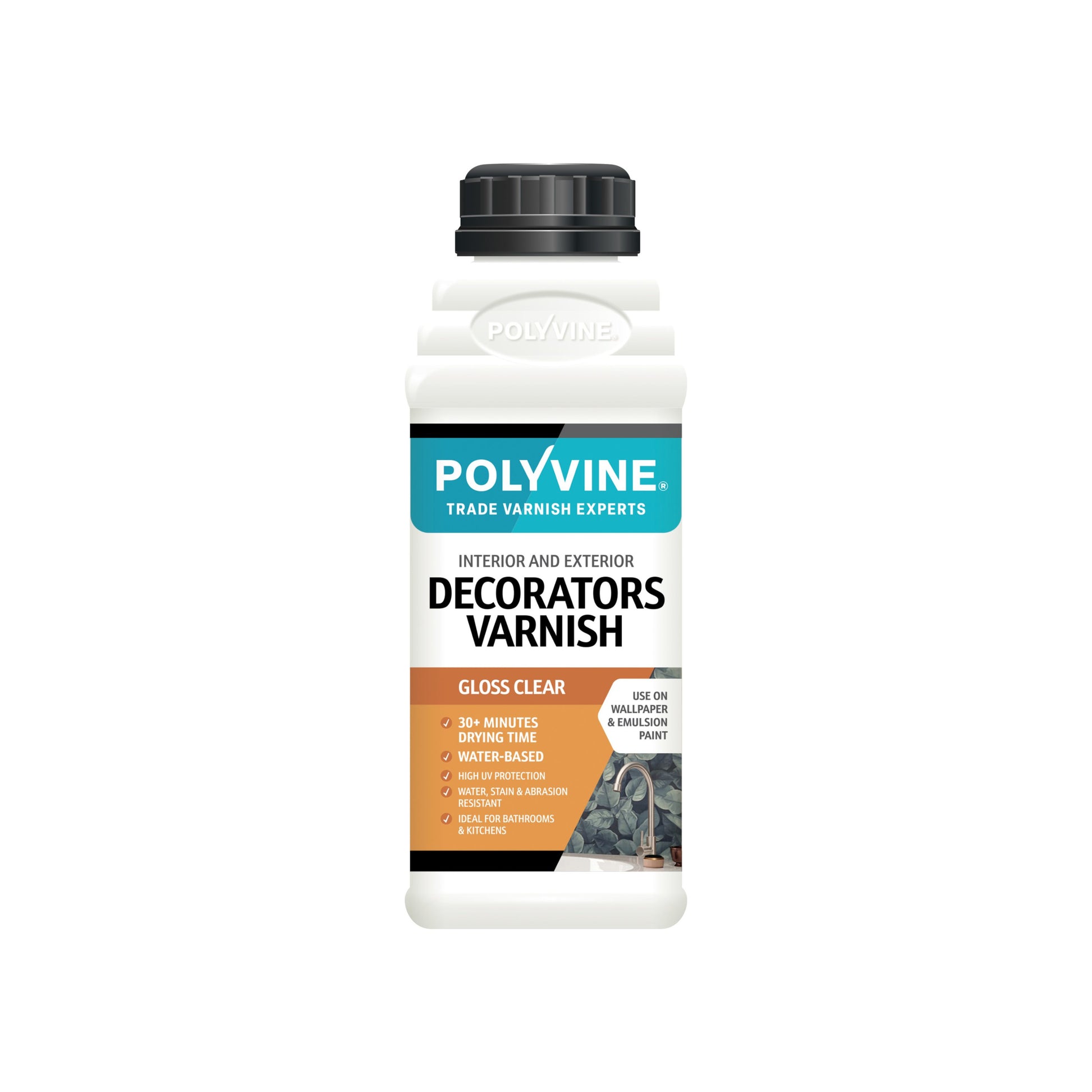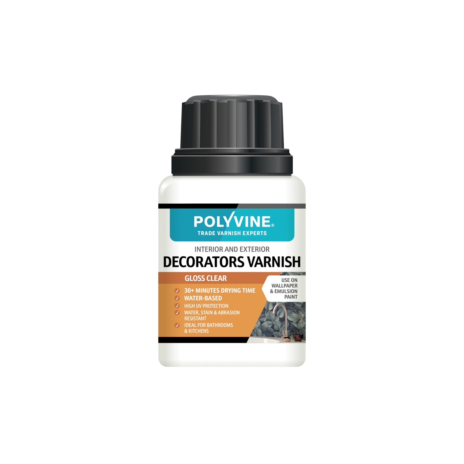 Polyvine Decorator's Varnish offers superior protection of decorative surfaces such as paintwork, wallpaper, fabric, wood, and plasterwork. Using nanotechnology, it provides long-term protection against finger marks, stains, scuffing, colour fading, and UV deterioration. Available in gloss, satin, or dead flat, it's the perfect choice for professional and amateur decorators.