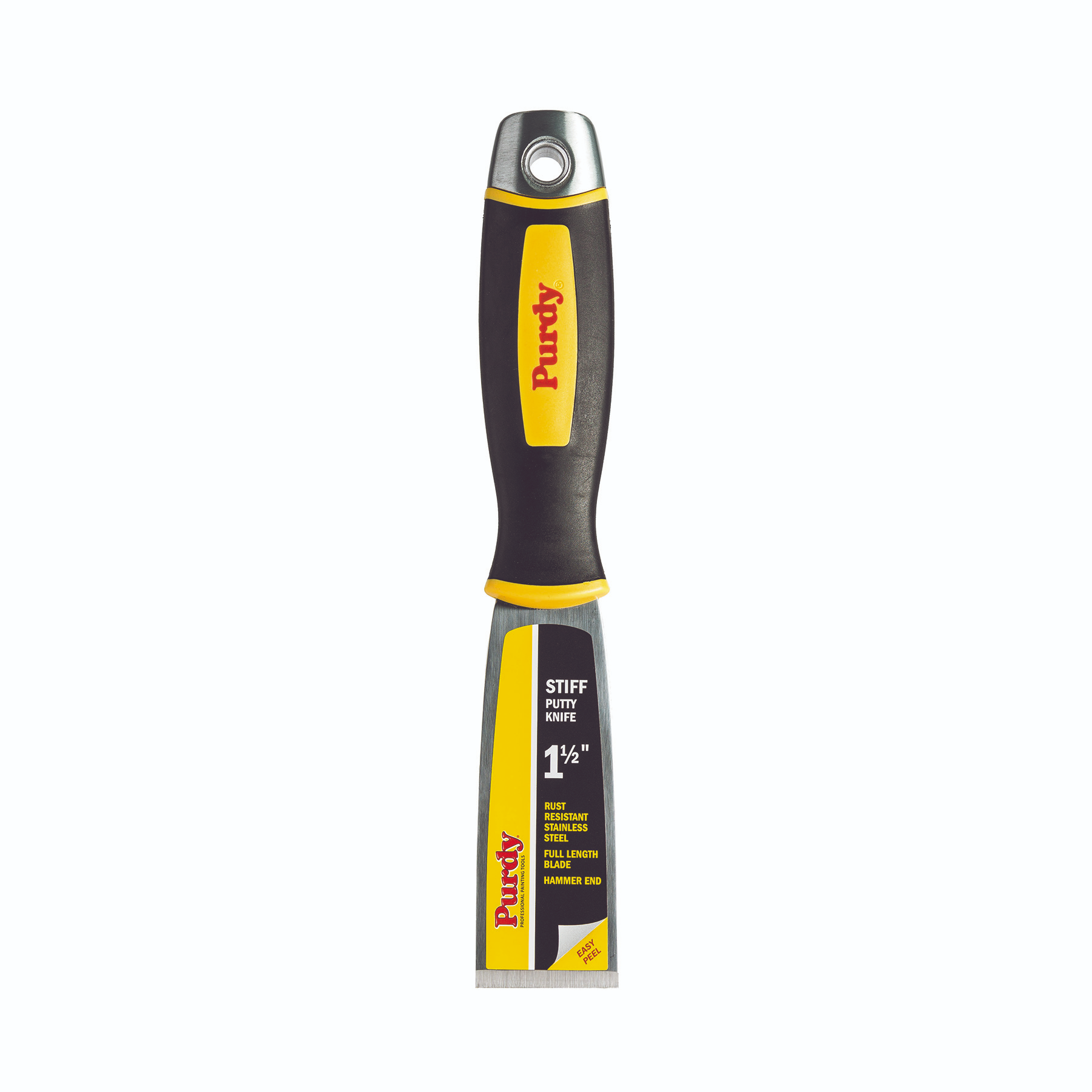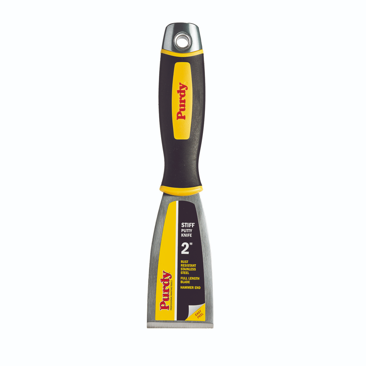 For added comfort and control, the putty knife is equipped with a non-slip handle, ensuring a secure grip even in challenging conditions. Available in two sizes, it caters to various project needs and is built to withstand rigorous use. This makes the Purdy Premium Stiff Putty Knife a trusted choice among professionals for its reliability and effectiveness in tackling tough jobs.