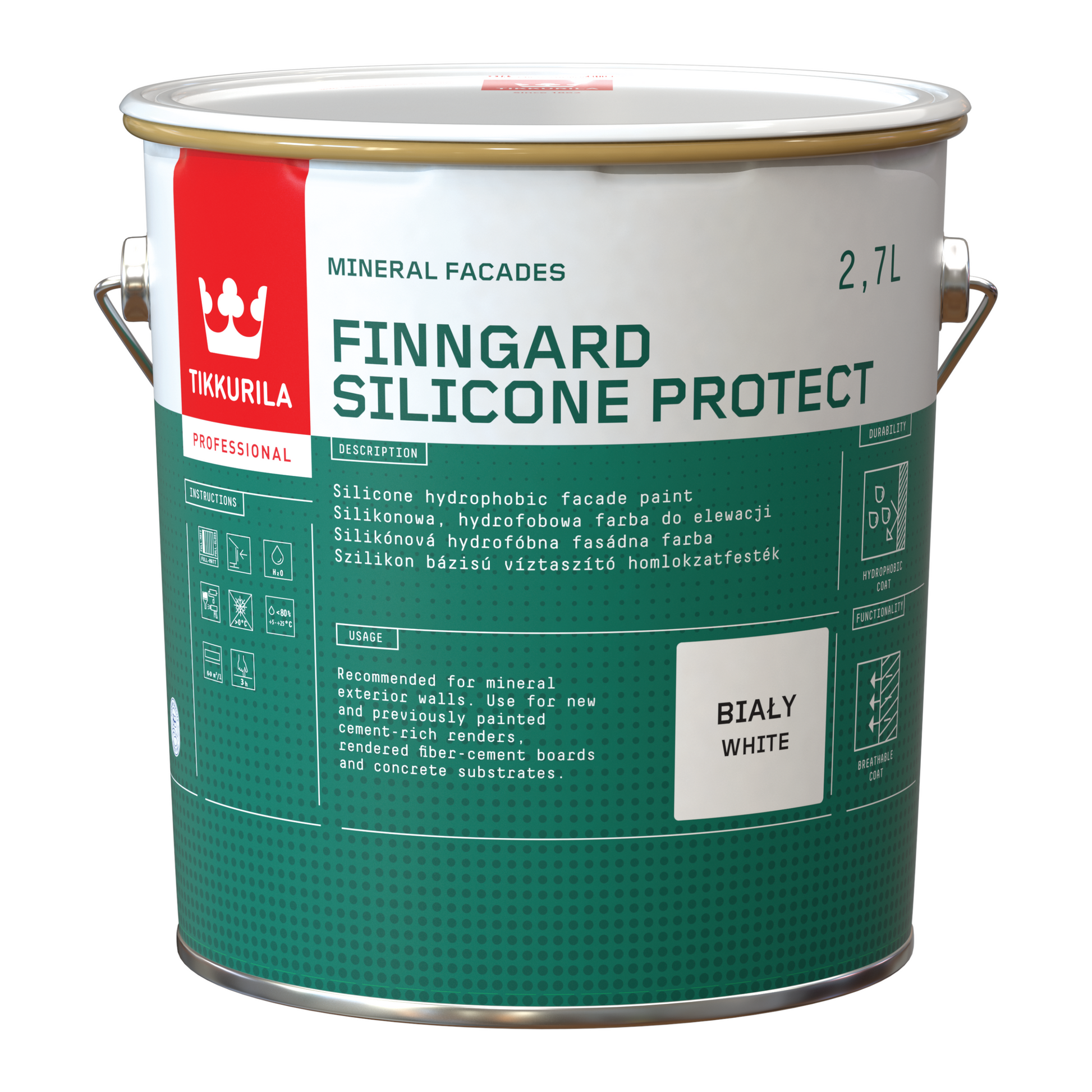 Tikkurila Finngard Silicone Protect is a water-based, matt acrylic masonry paint designed to provide a durable, decorative finish for exterior surfaces. Its high moisture vapour permeability allows substrates to breathe, making it particularly suitable for façades where moisture management is essential.