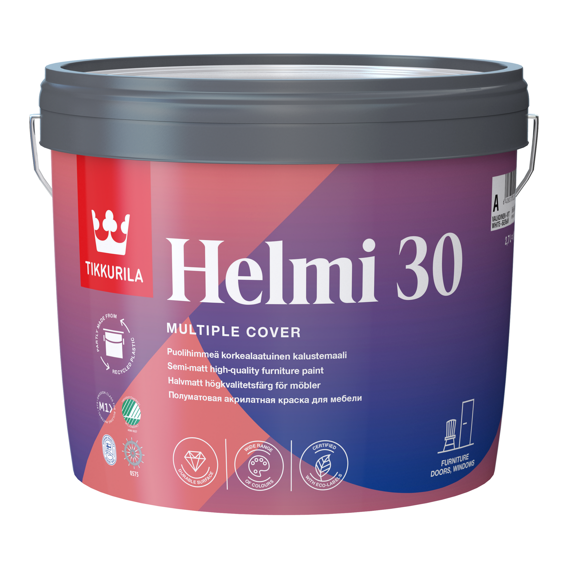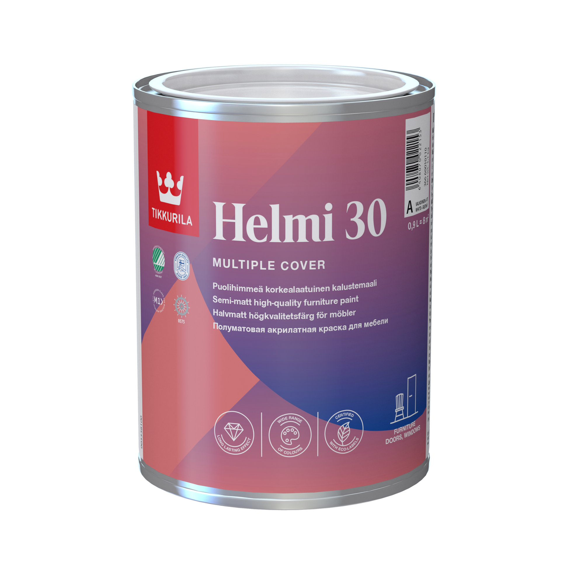 This durable satin finish is suitable for a variety of surfaces including doors, skirting boards, radiators, cabinets, and kitchen units. It offers excellent resistance to yellowing—even under heat exposure—and, when used with the correct primer, can be applied to metal surfaces. Helmi 30 forms a robust, washable coating, tested to withstand over 5,000 scrubbing cycles (SFS 3755), making it a reliable choice for areas requiring frequent cleaning and long-term durability.