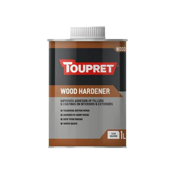 Toupret Wood Hardener is a water-based, deep-penetrating solution designed to strengthen and stabilise soft or decayed wood prior to repair. Suitable for both interior and exterior applications, it reinforces compromised timber, providing a solid foundation for subsequent filling, staining, or painting. By consolidating rotten fibres, it significantly improves the adhesion of fillers and decorative coatings.
