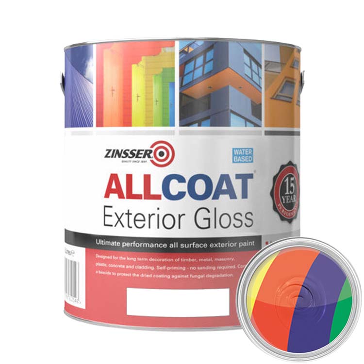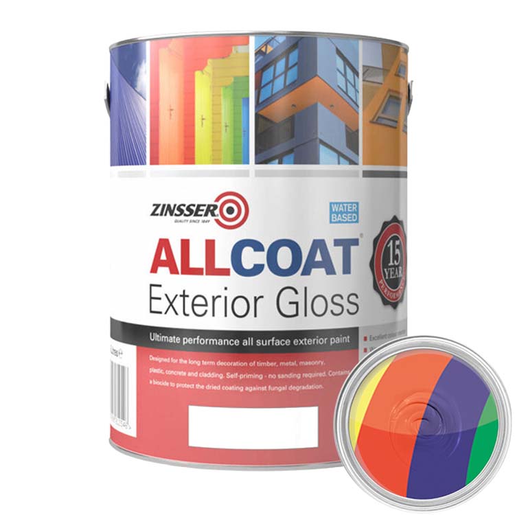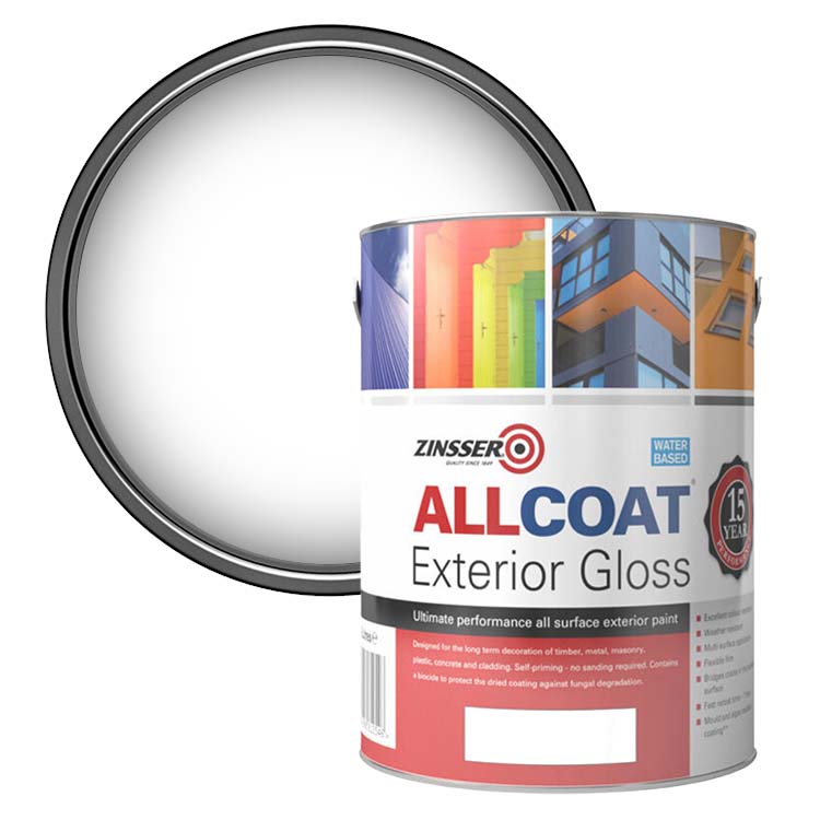 Zinsser AllCoat Exterior is a self-priming paint that can be applied directly to previously painted surfaces without the need for sanding, even over glossy paints or those coated with bitumen, tar varnish, or creosote. In most cases, there is no requirement to purchase a separate primer, saving you time and effort.