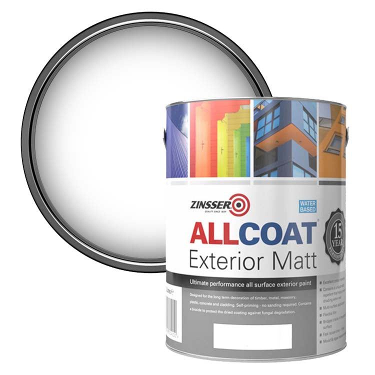 Introducing Zinsser AllCoat Exterior, the ultimate high-performance paint that provides superior protection for all exterior surfaces, including wood, metal, masonry, plastic, concrete, and cladding. This mould-resistant paint forms a vapor-permeable, low maintenance, water-shedding coating that can be recoated in just 1 hour.