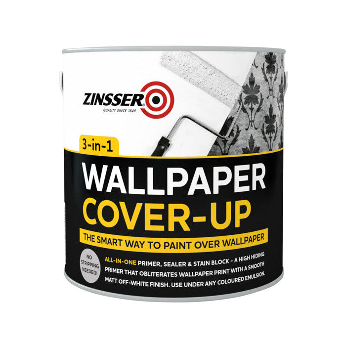Wallpaper Cover-Up by Zinsser is an all-in-one primer, sealer, and stain blocker. This high-hiding primer effortlessly conceals wallpaper prints, providing a smooth, matte off-white finish. It's the perfect base for any coloured emulsion.