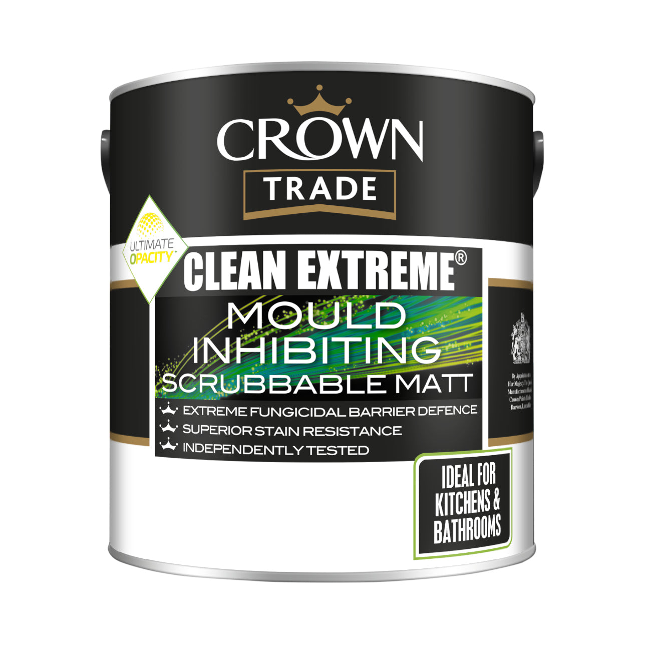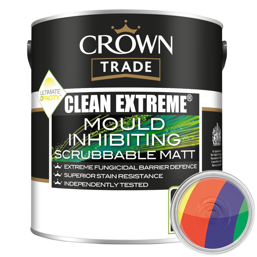 Crown Clean Extreme Mould Inhibiting Matt is a specialist paint designed to deliver exceptional performance in moisture-prone areas such as kitchens, bathrooms, and utility spaces. Its formulation offers a durable, flat matt finish combined with superior stain resistance and an advanced fungicidal barrier, helping to maintain clean and hygienic surfaces over time. This makes it particularly well-suited for environments where condensation and humidity are common issues.